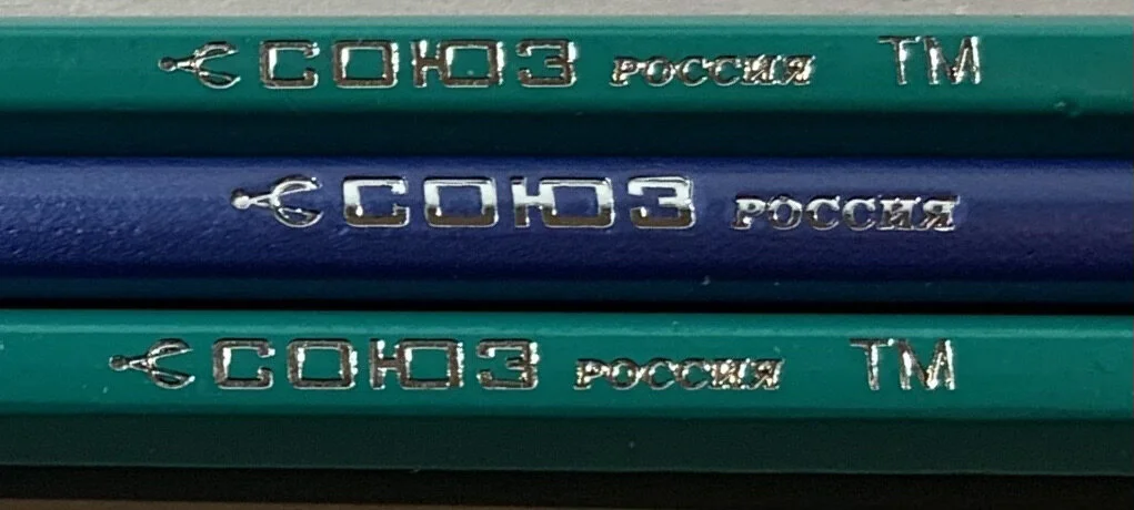 My earliest memories of extruded pencils were from primary school, where I remember some kids had these and when they sharpened them could produce a lovely tight spiral of shavings with the strips of core attached. All these prior impressions were completely turned on their heads with three lines of pencils from Союз/Soyuz, a brand of pencils from а Russian plastics company whose other products include such things as styrofoam, medical supplies and fibre-optic cable. I bought these three varieties — a hex, a rubbered hex and a triangular — from Ozon with another order a while back, and did not initially know they were extruded.